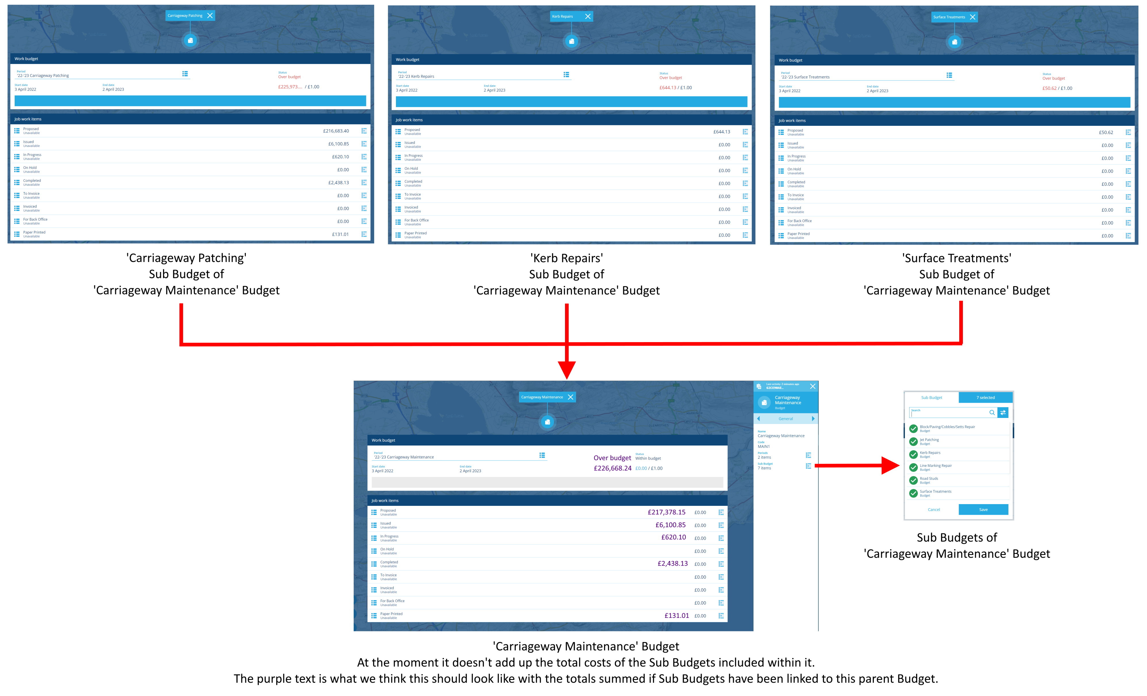 Sub Budgets could be optional but if they are included then they should have an affect on the overall parent Budget that they are linked to.