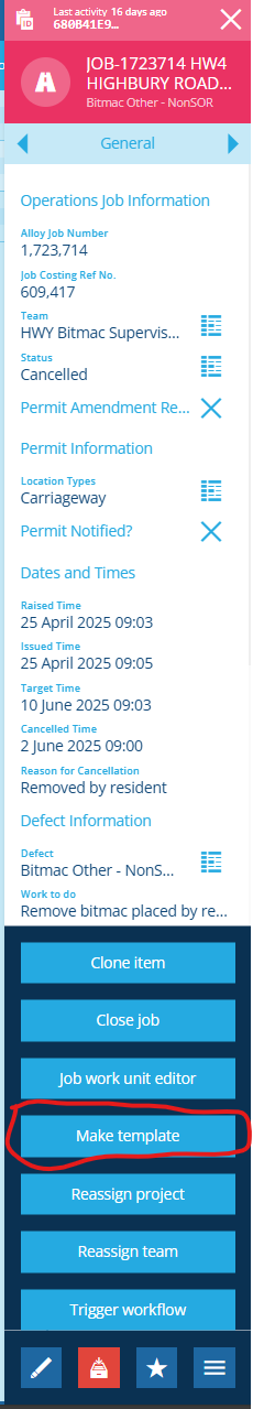 When users are given edit permission for a design that includes defects, jobs or inspections, they then have the power to use the 'Make Template' Button. It is very easy to accidentally select this when choosing one of the other nearby buttons. See attached image.