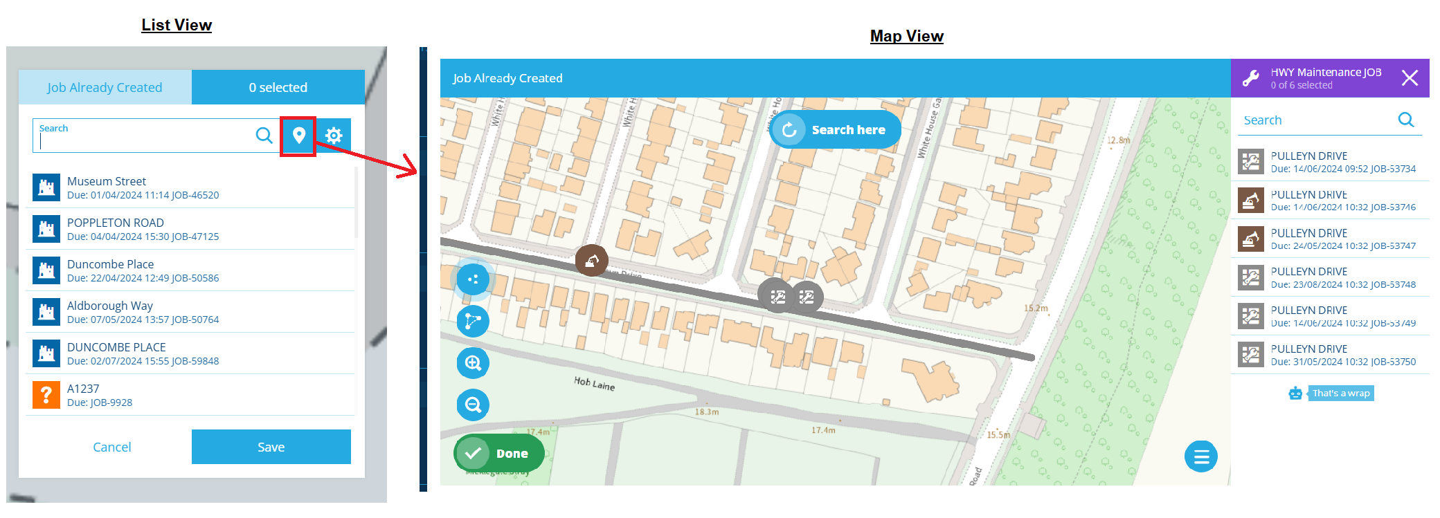 However, you only have the list view in the mobile app, however, it would be useful for site agents/inspectors to be able to select from the map to see what items are near them and select from the map.